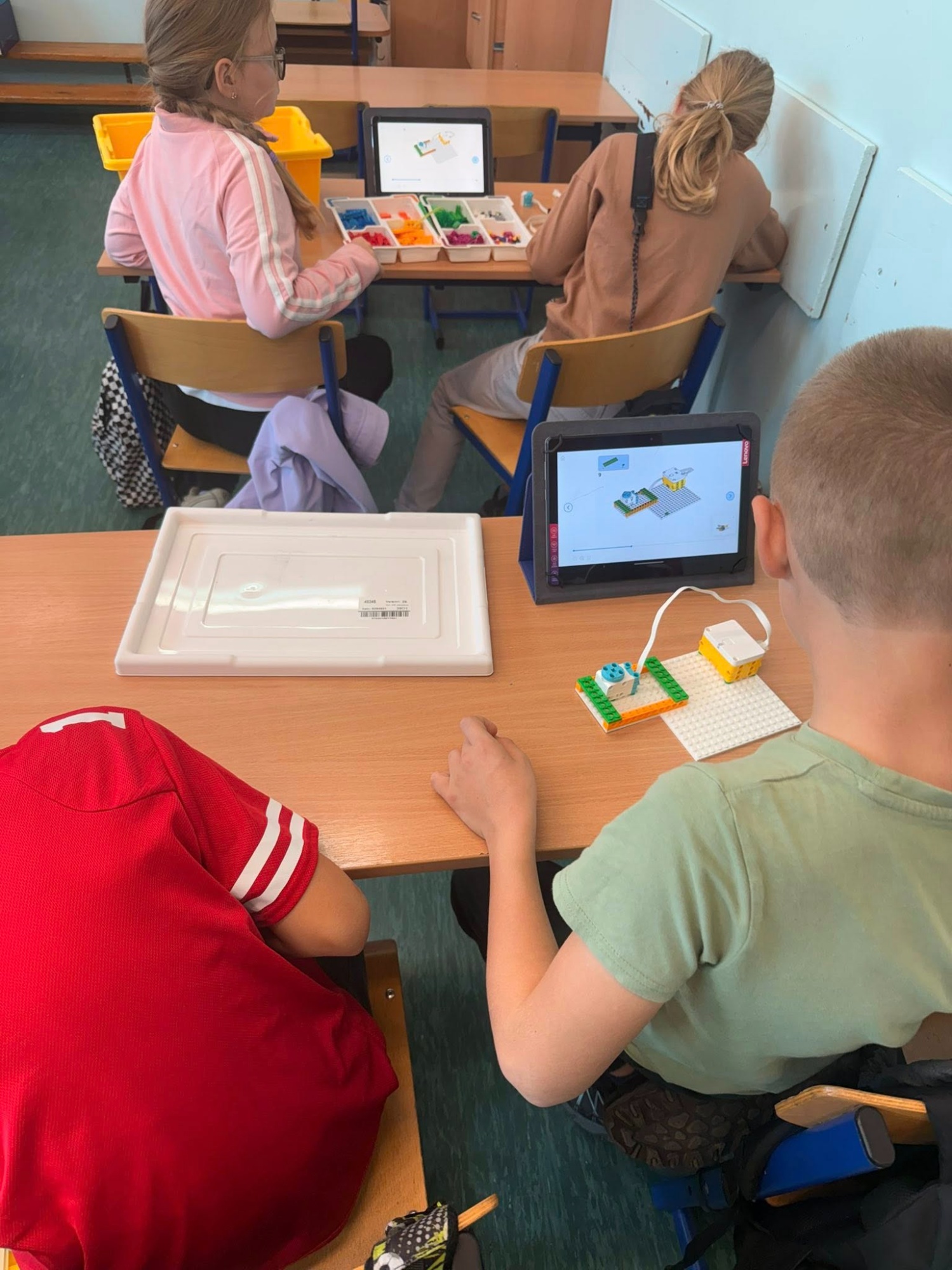 Zajęcia sprzyjały także współpracy w zespołach , rozwijaniu logicznego myślenia oraz umiejętności rozwiązywania problemów. Nauka połączona z zabawą sprawiła dzieciom ogromną radość i dostarczyła wielu pozytywnych emocji. To był inspirujący czas pełen uśmiechu, kreatywności i pierwszych technologicznych sukcesów!